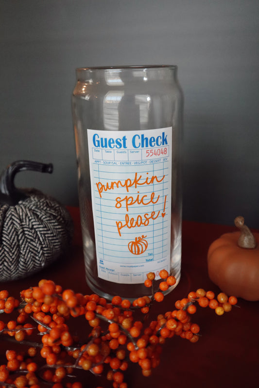 Pumpkin Spice Guest Check Glass Can