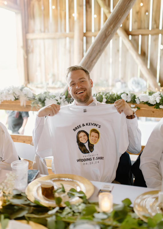 Celebrate your love with a fun and unique twist! Our custom wedding t-shirts feature the faces of the happy couple, making them perfect for pre-wedding events, bachelor/bachelorette parties, or as a memorable keepsake from your special day.